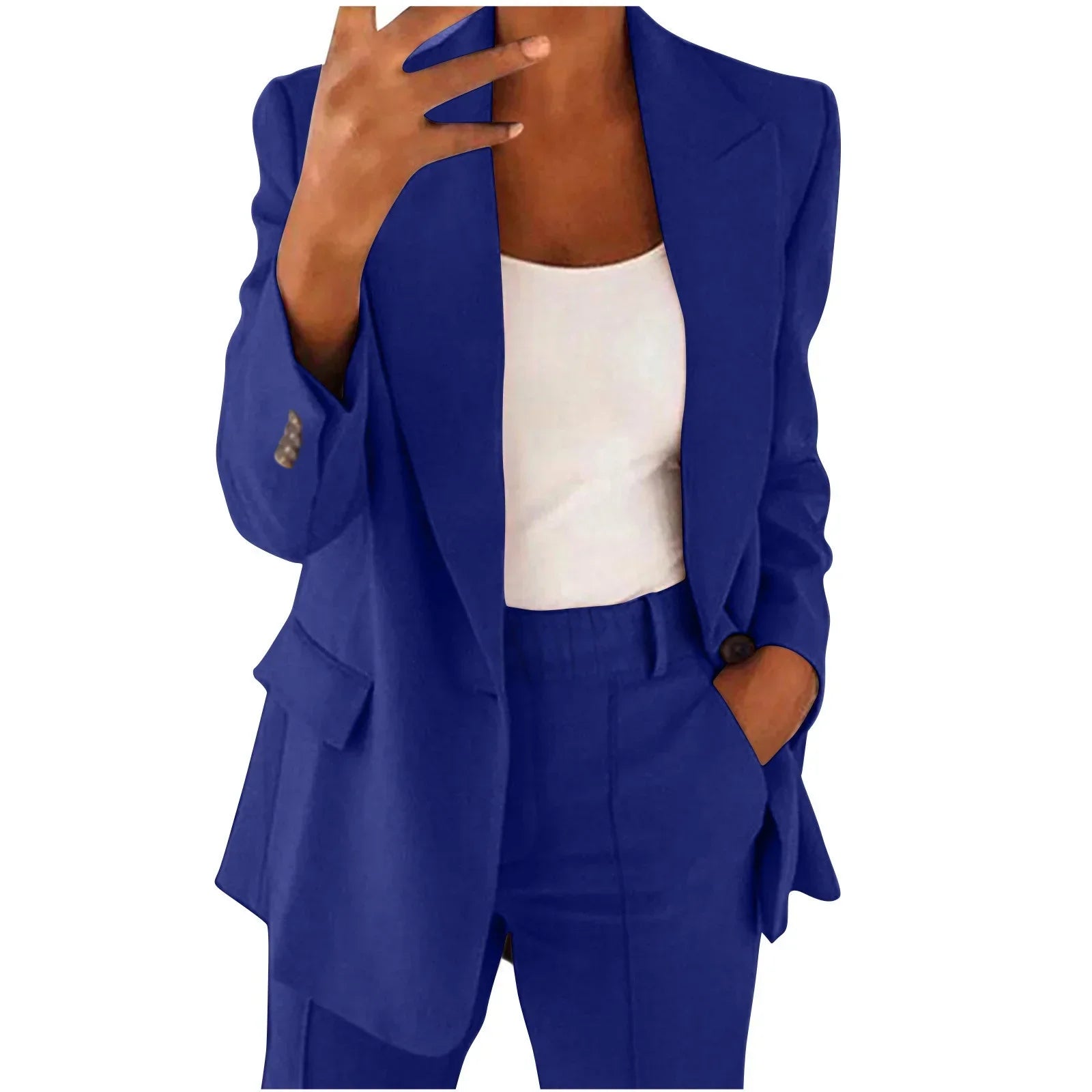 • Matching trousers – Elegantly structured for a polished silhouette