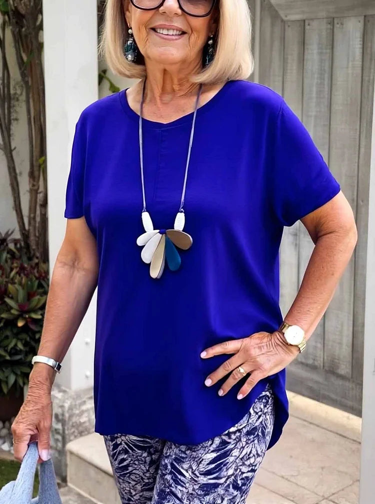 • Short-sleeve printed top – Adds a pop of fun and personality.